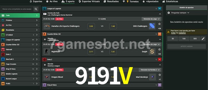 O 9191V oferece uma grande seleção de opções de apostas em e-sports com probabilidades competitivas